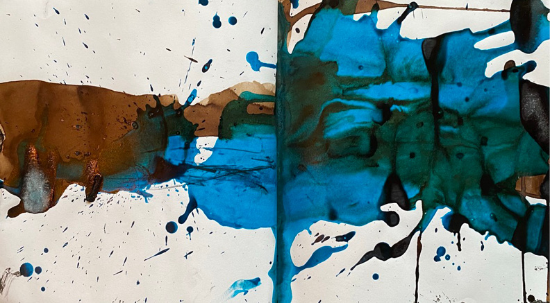Landscape in brown and blue, 2020 Ink on paper 30 x 60 cm
