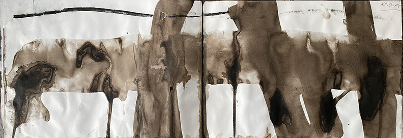 Walking on the sand, 2020 Ink, charcoal and wind on paper 35 x 80 cm