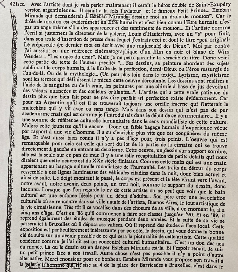 Some poetic words broadcasted on the radio, following an exhibition in Belgium